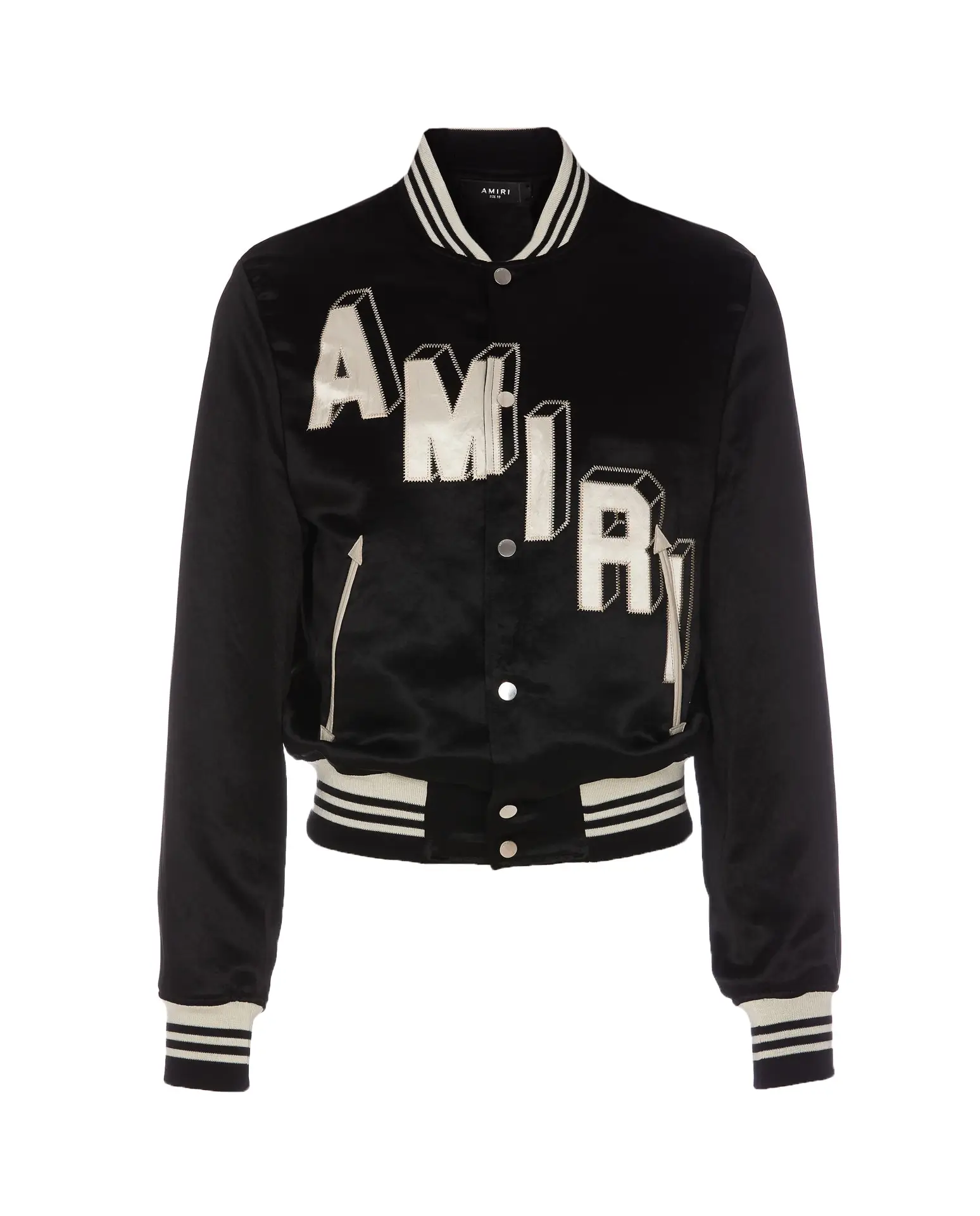 Amiri Logo Black Satin Varsity Jacket