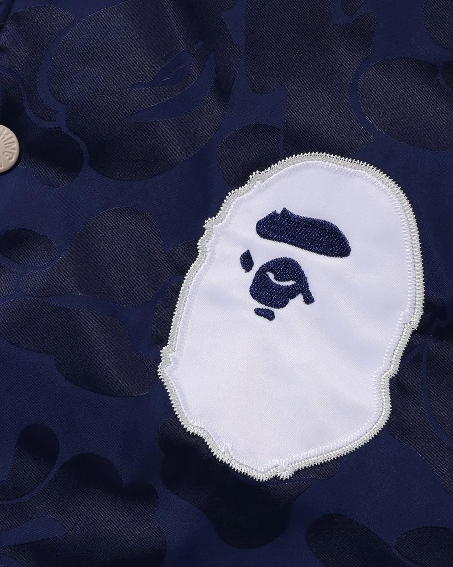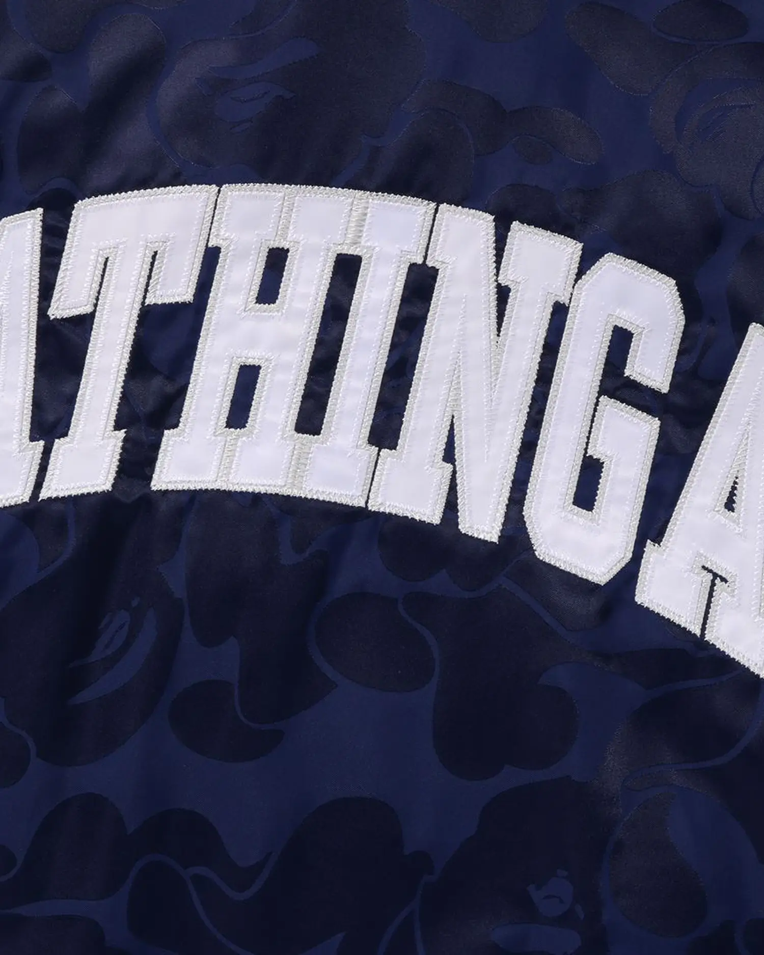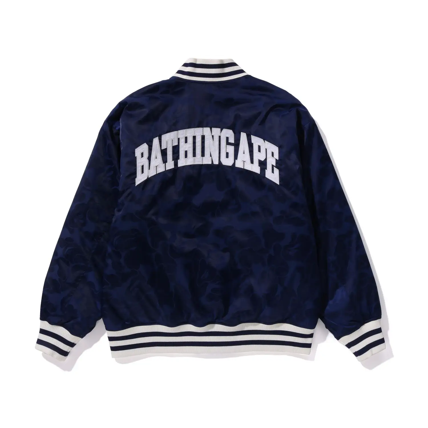 BAPE Tonal Solid Camo Padded Navy Blue Varsity Jacket