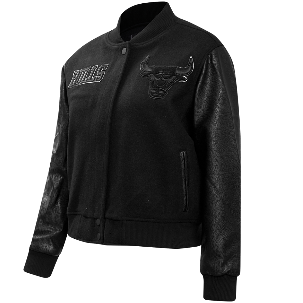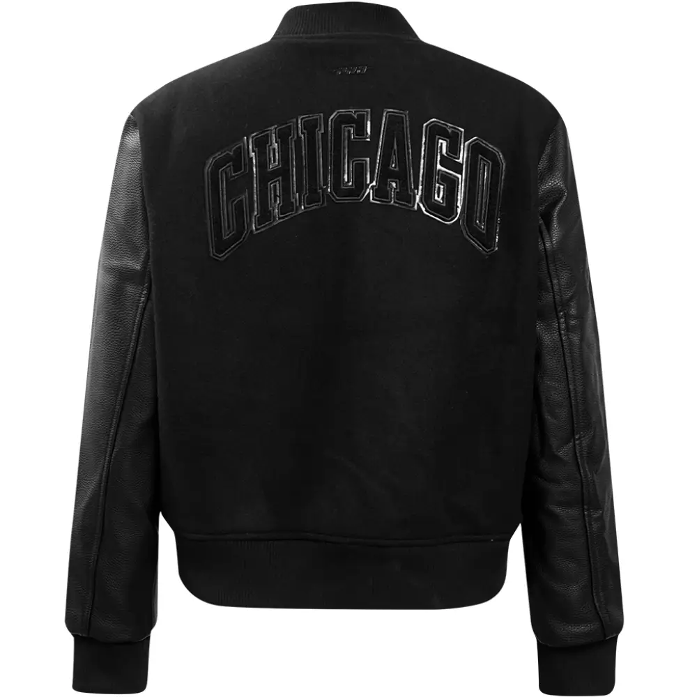 Chicago Bulls Logo Full Black Wool & Leather Varsity Jacket
