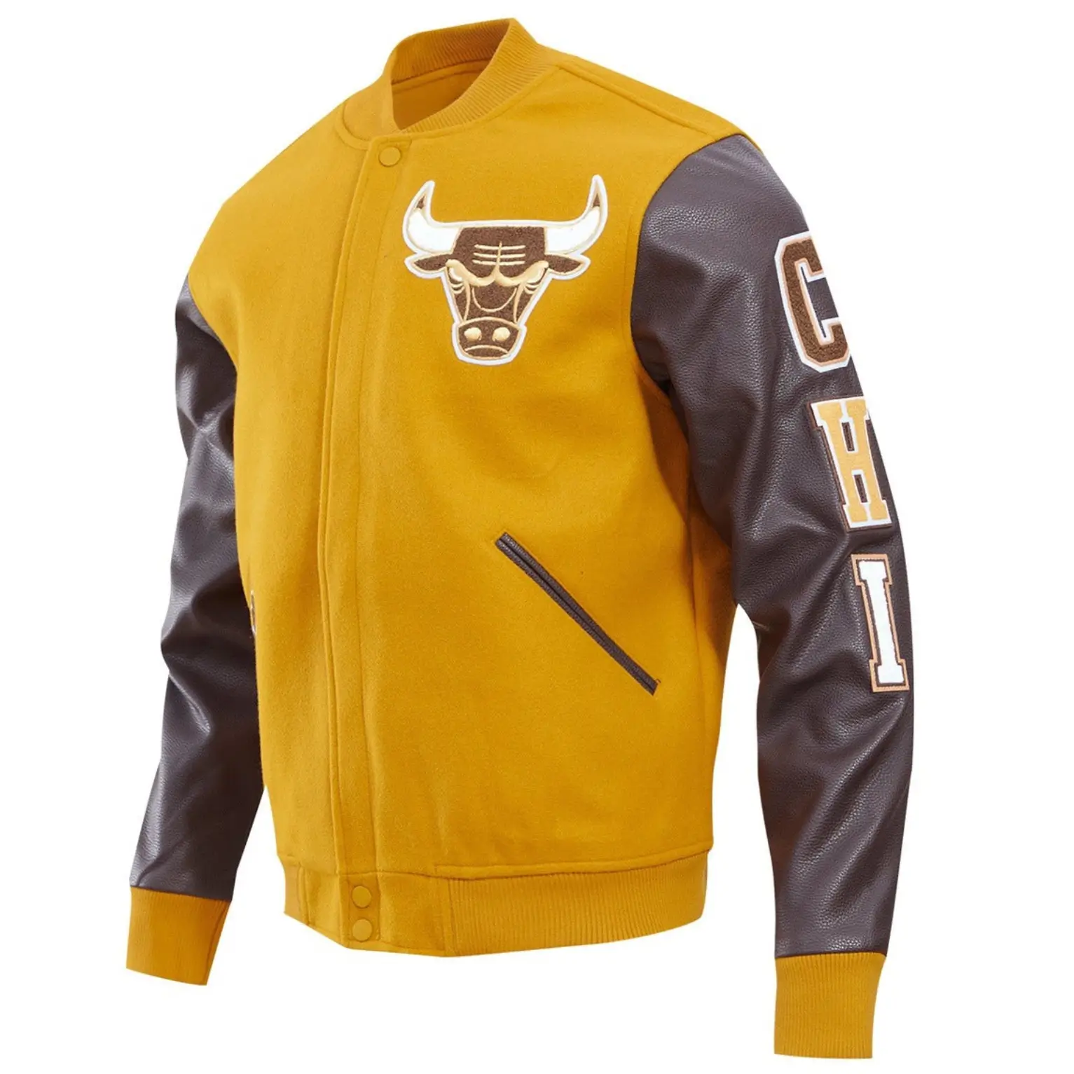 Chicago Bulls Wool & Leather Varsity Jacket Yellow & Brown