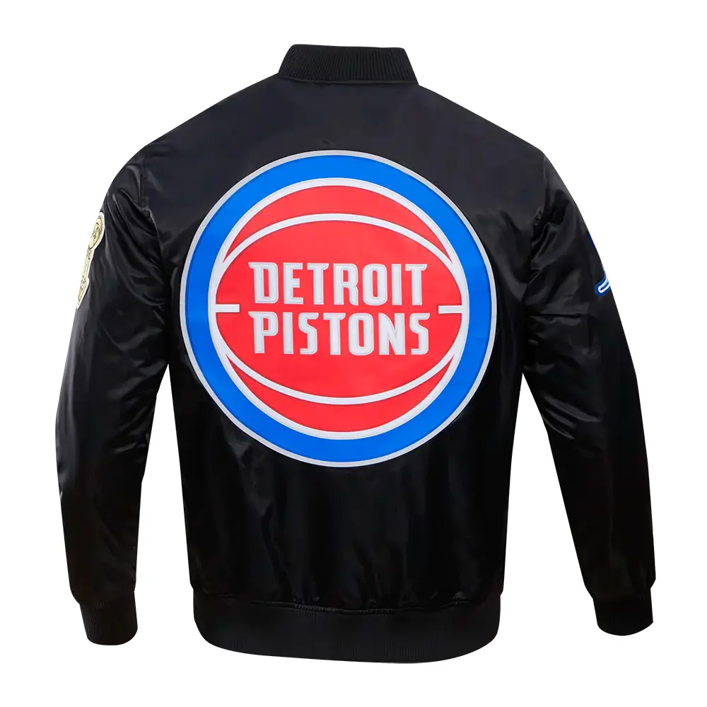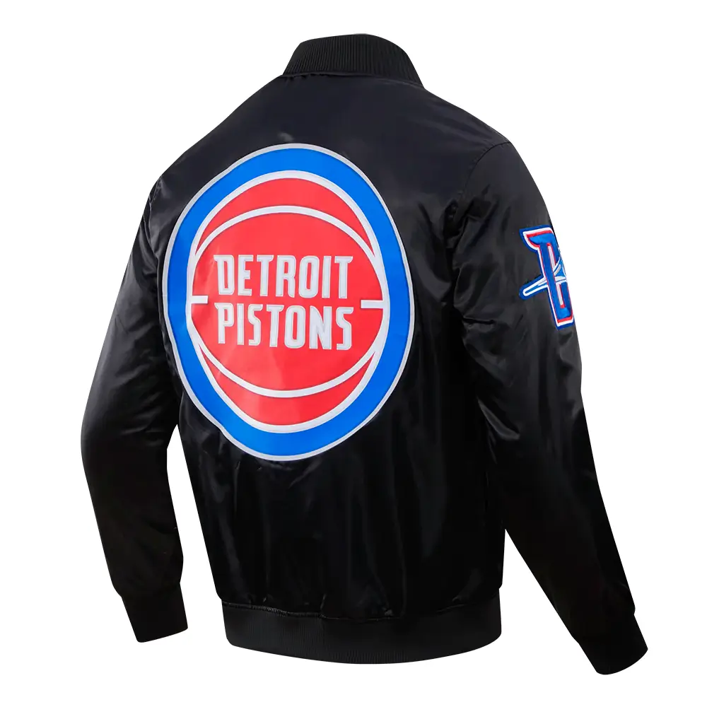 Detroit Pistons Big Logo Black Satin Varsity Jacket
