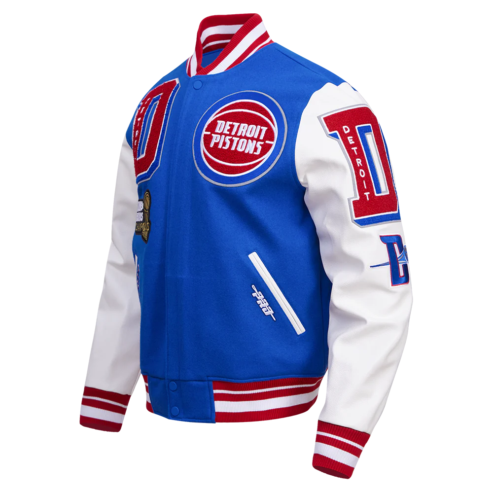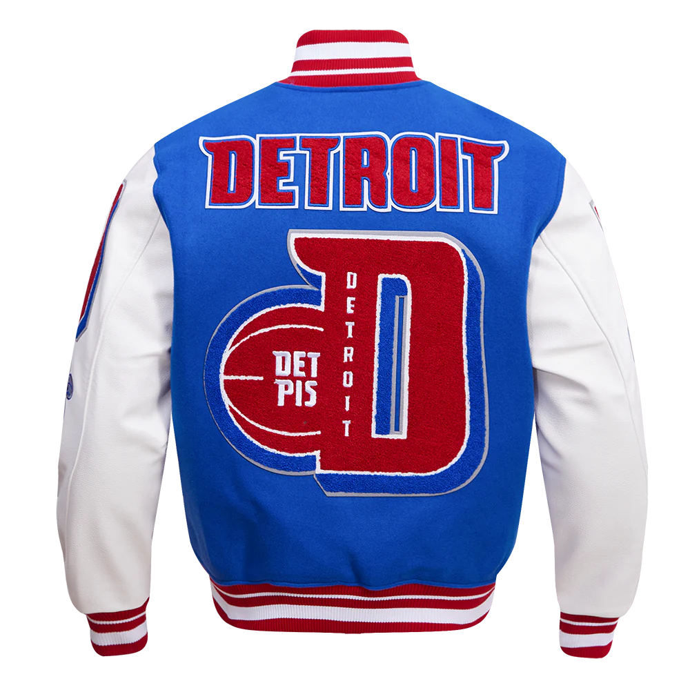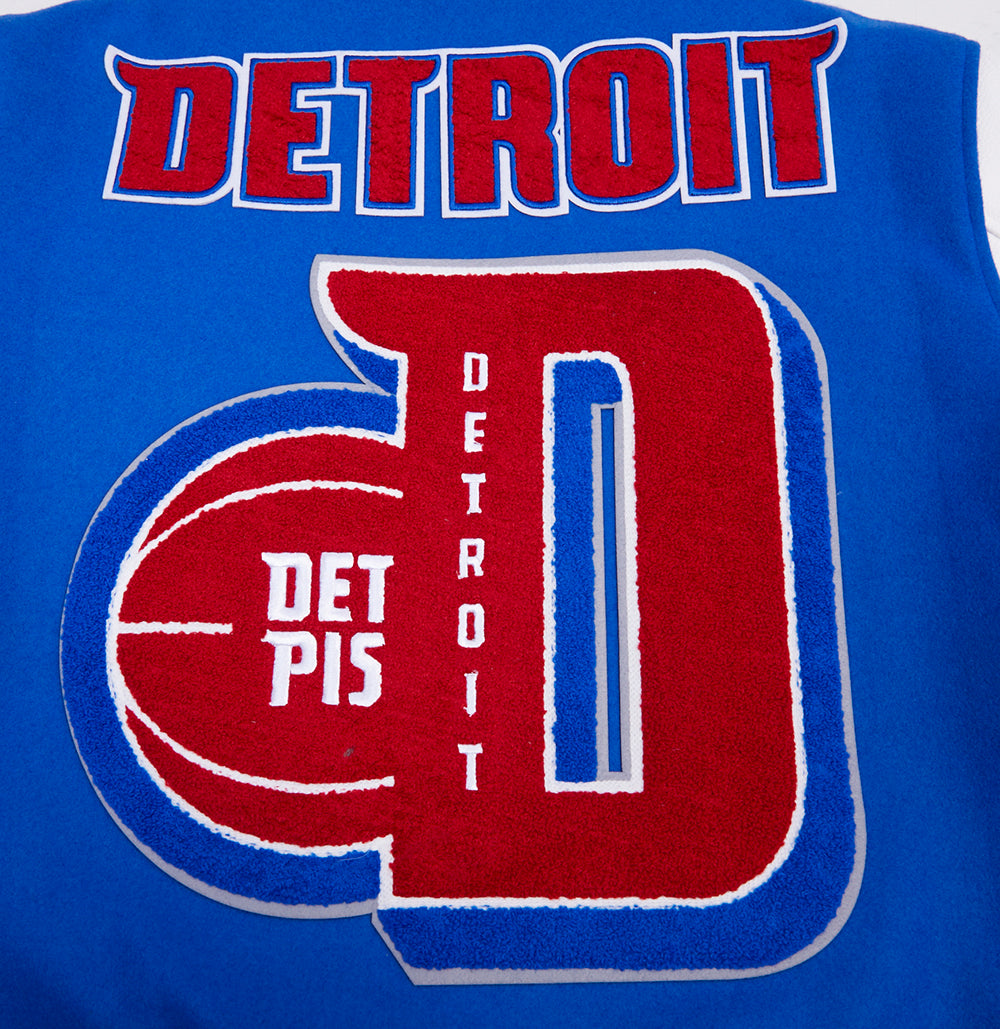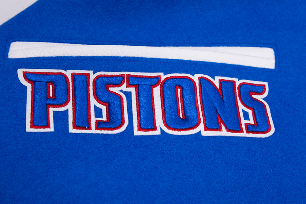 Detroit Pistons Mash Up Logo Blue & White Varsity Jacket