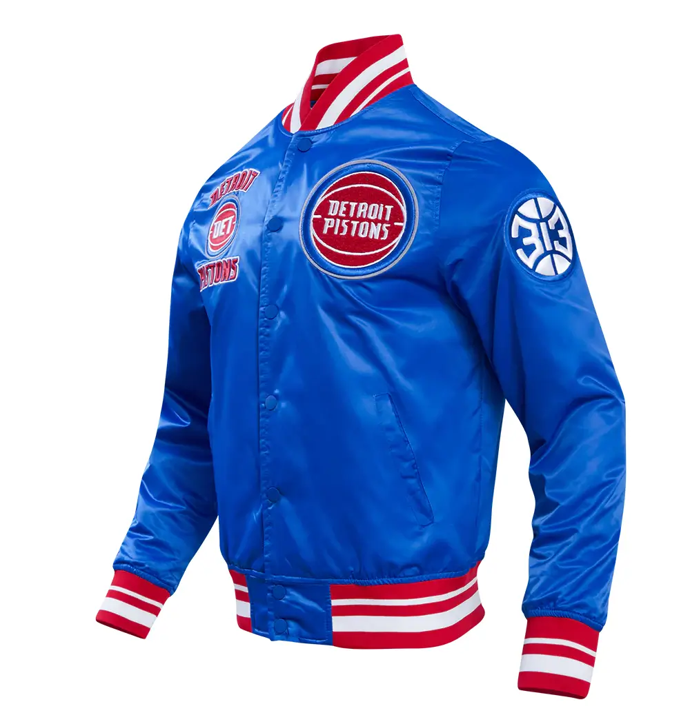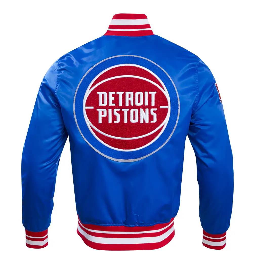Detroit Pistons Retro Classic Rib Royal Blue Satin Varsity Jacket