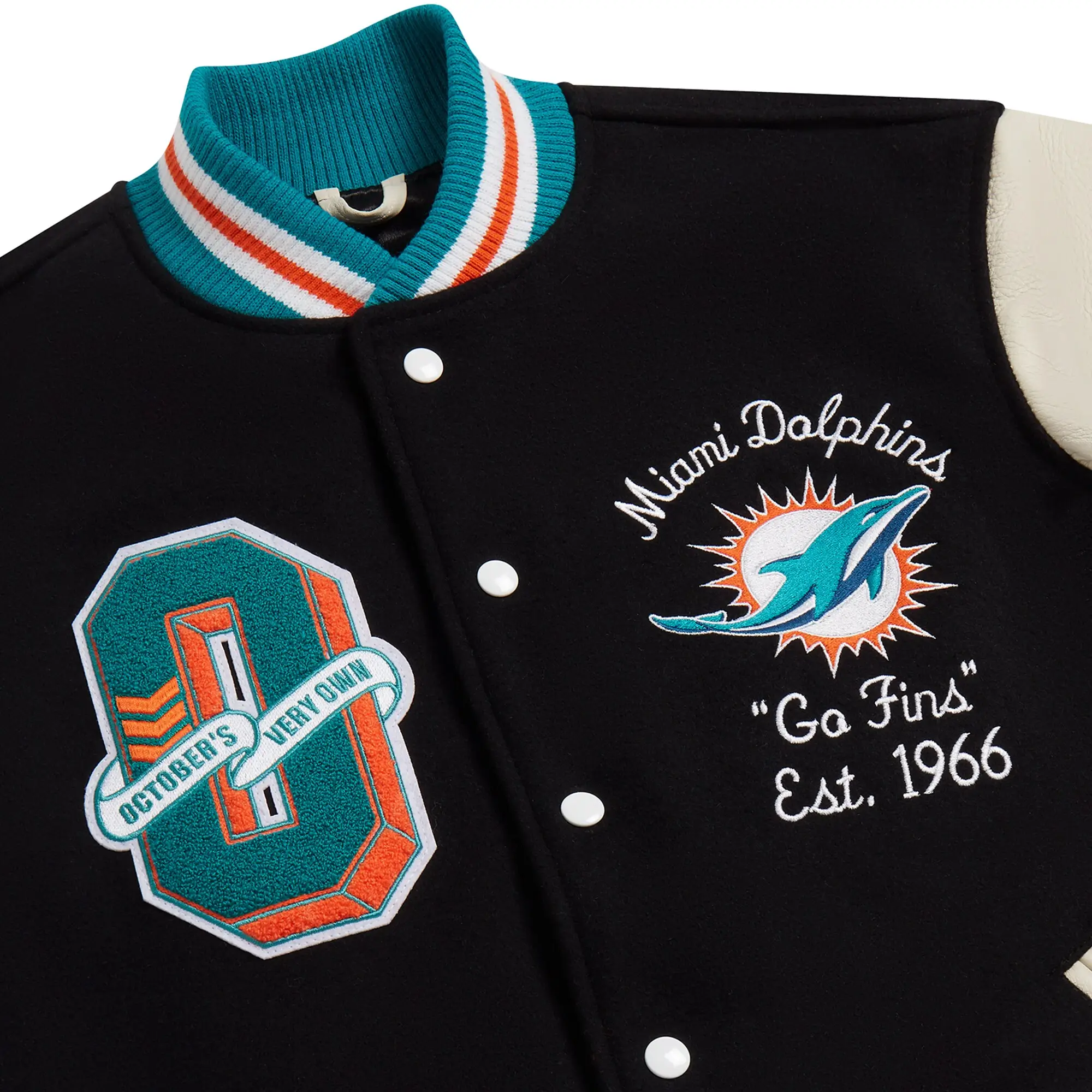 Miami Dolphins OVO Black Full-Snap Varsity Jacket