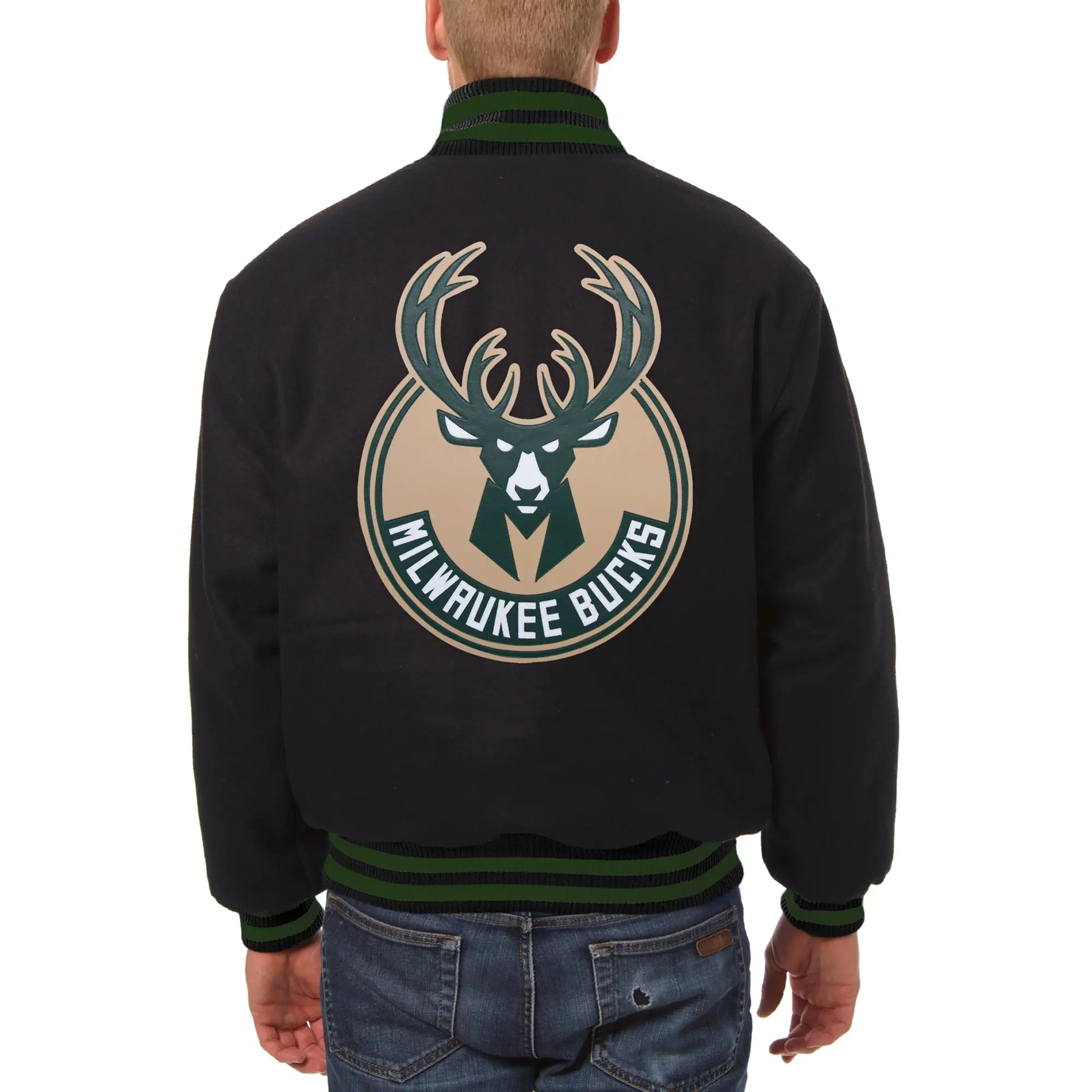 Milwaukee Bucks Logo Big & Tall Black Wool Varsity Jacket
