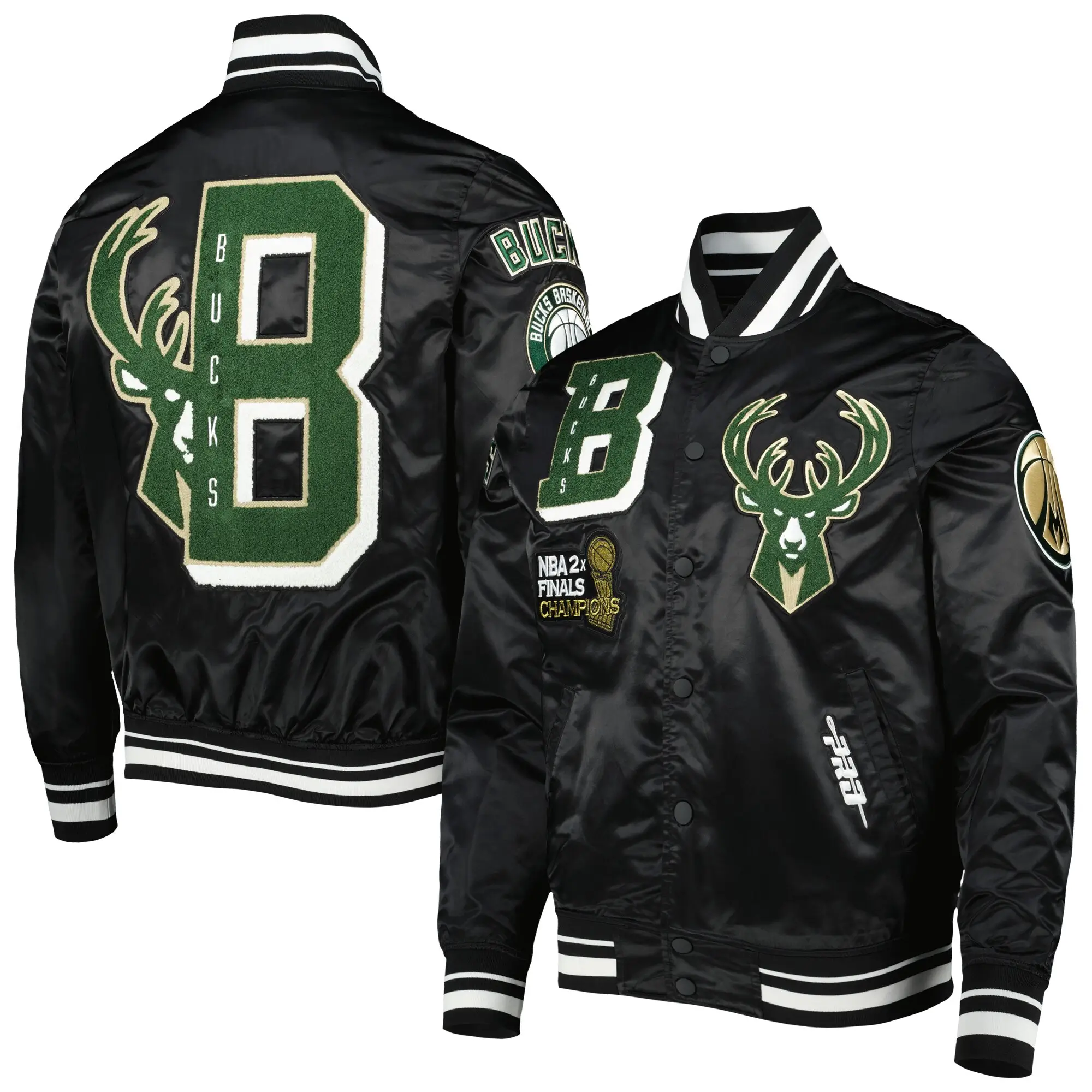 Milwaukee Bucks Pro Standard Mash Up Capsule Black Satin Varsity Jacket