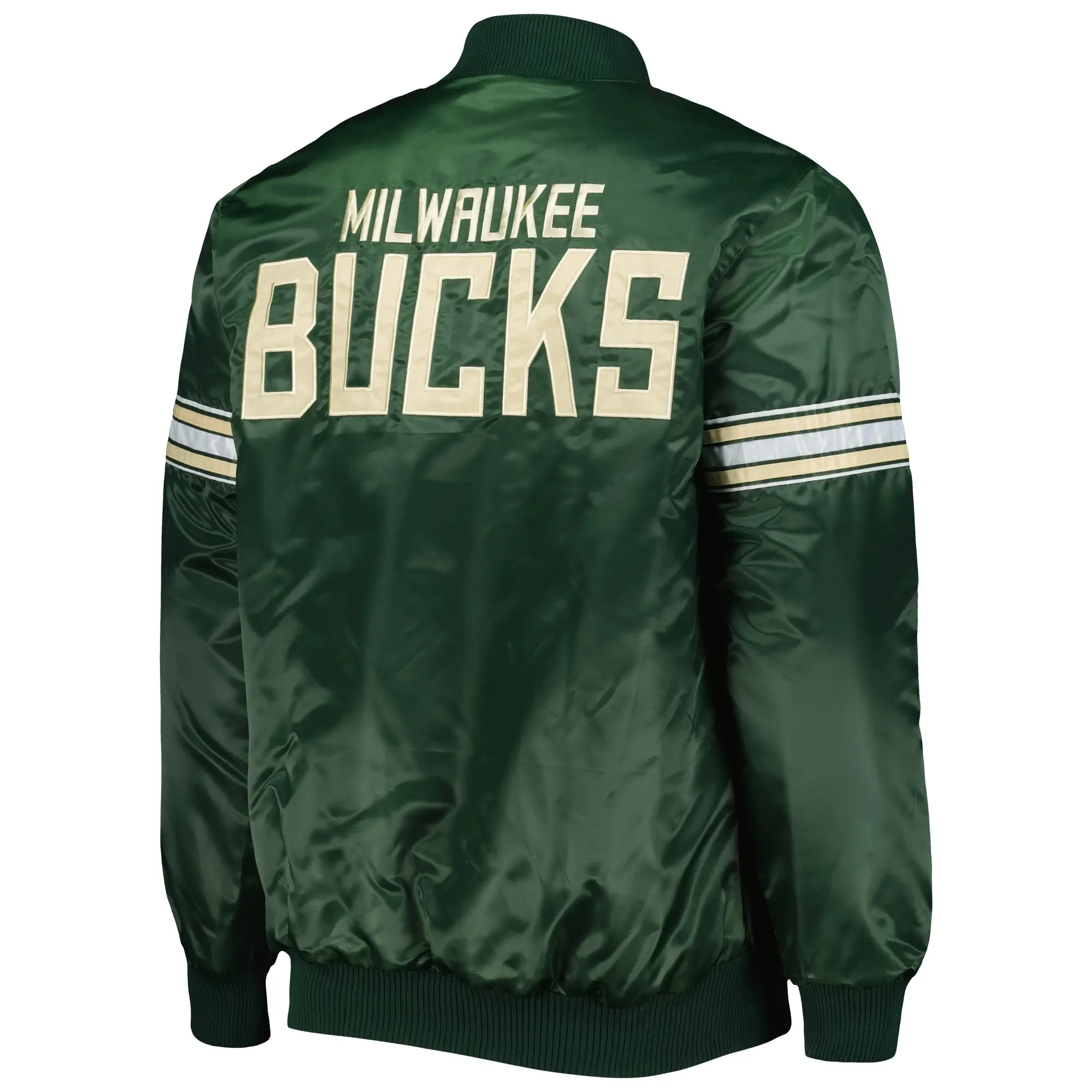 Milwaukee Bucks Starter Hunter Pick & Roll Green Satin Varsity Jacket