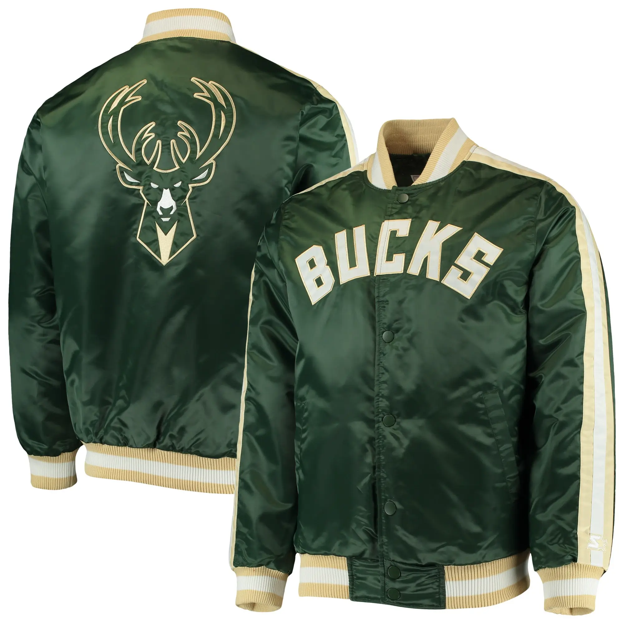 Milwaukee Bucks Starter The Offensive Full-Snap Hunter Green Satin Varsity Jacket
