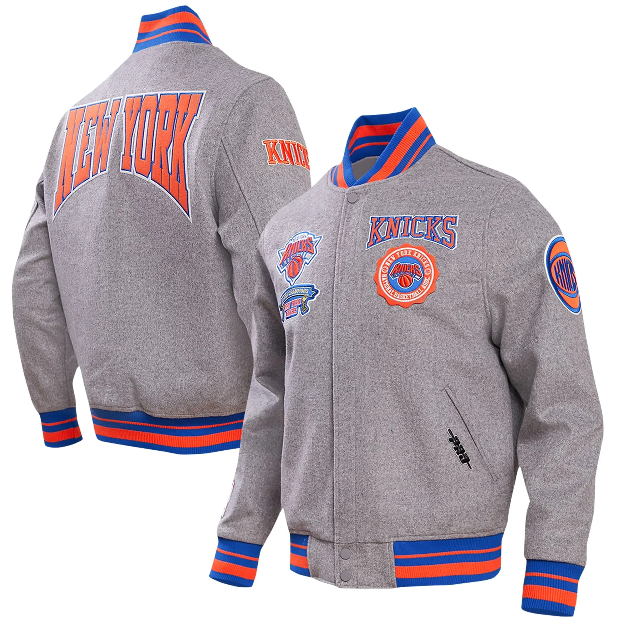 New York Knicks Pro Standard Heather Gray Varsity Jacket