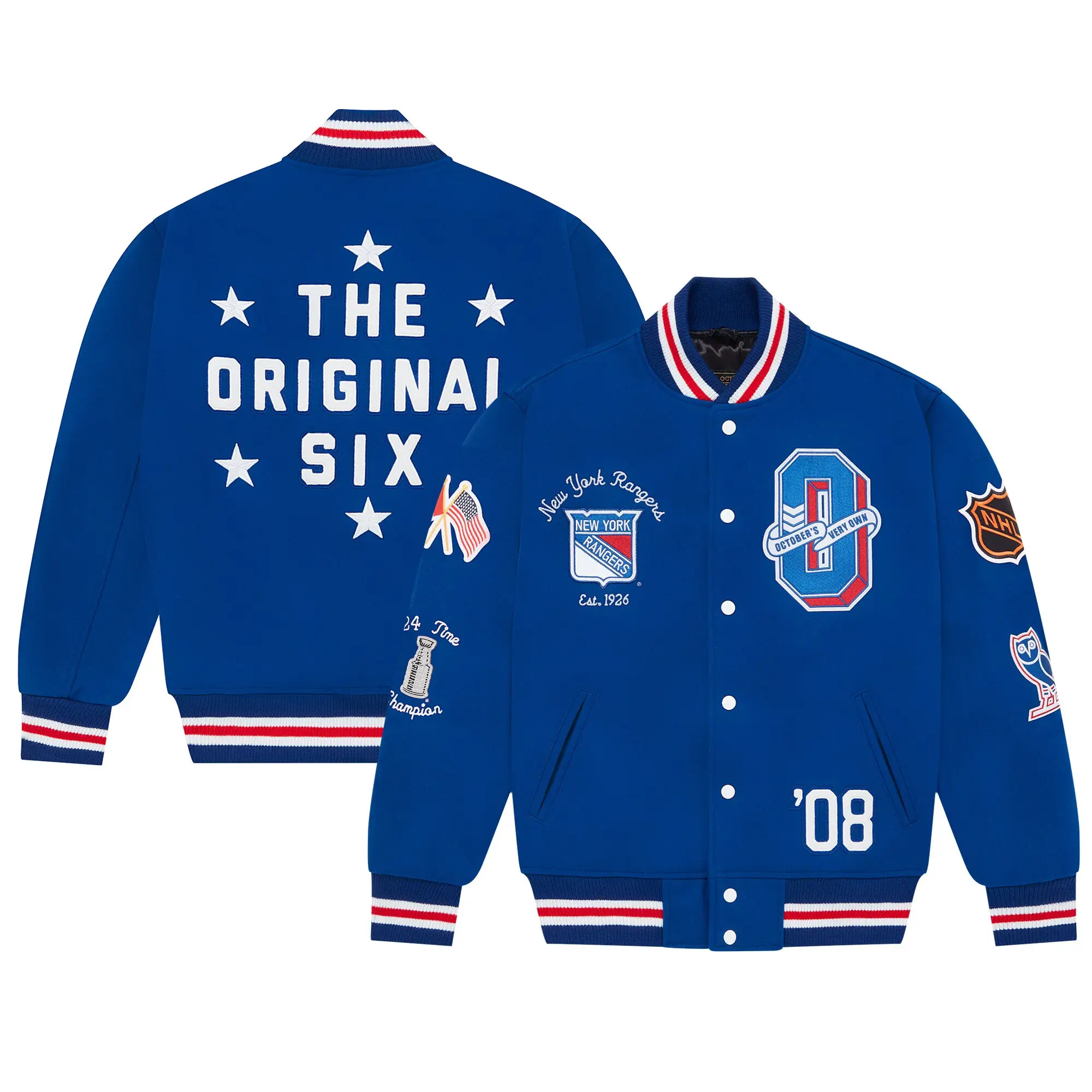 New York Rangers OVO x NHL Blue Full-Snap Varsity Jacket