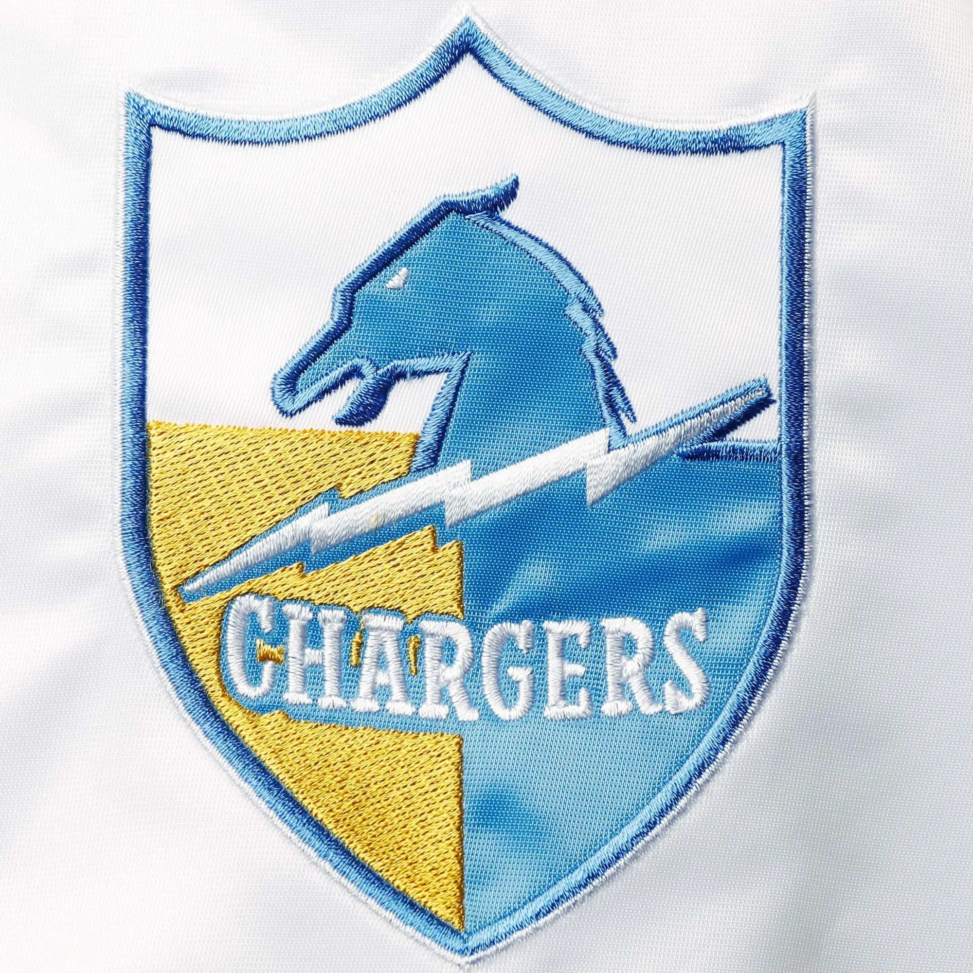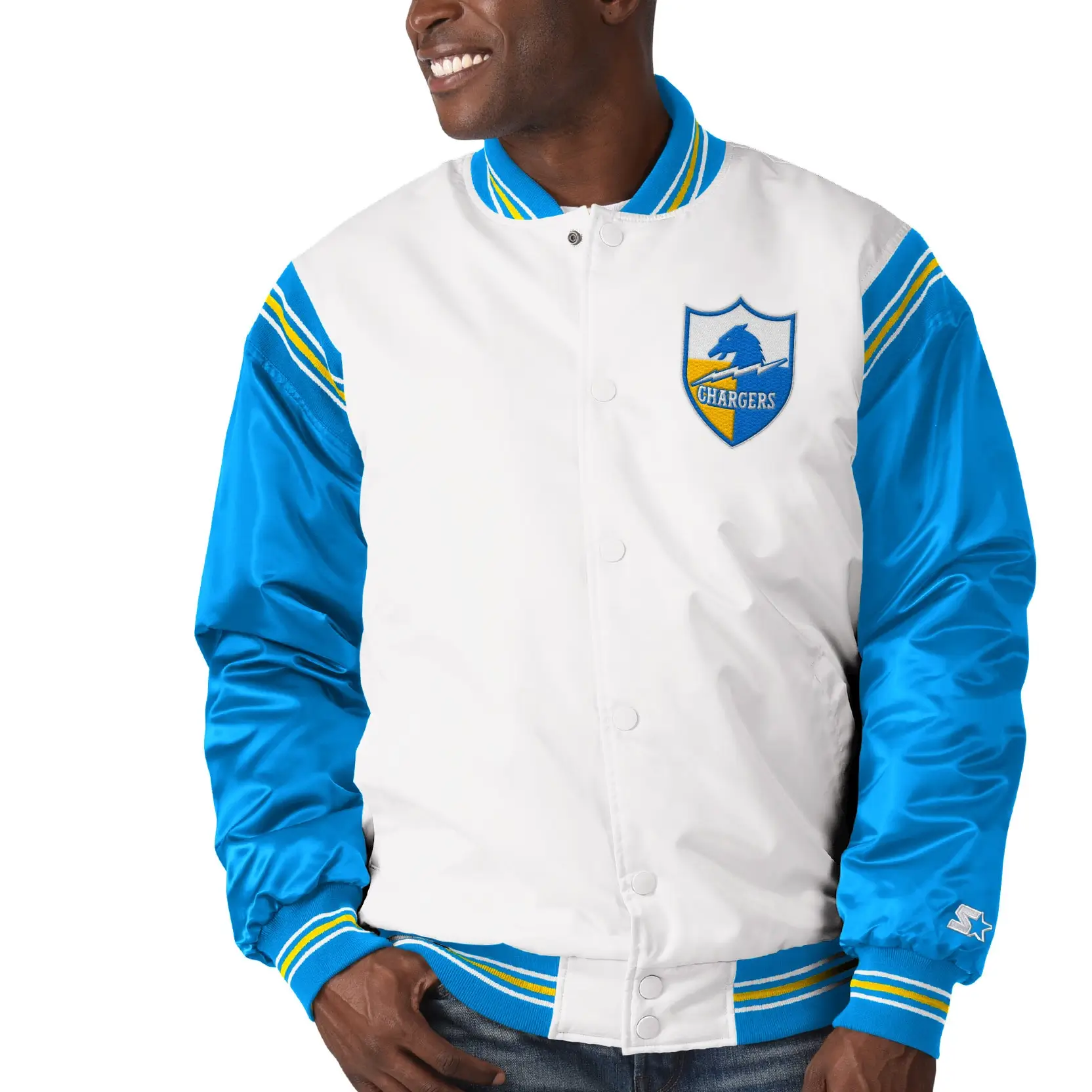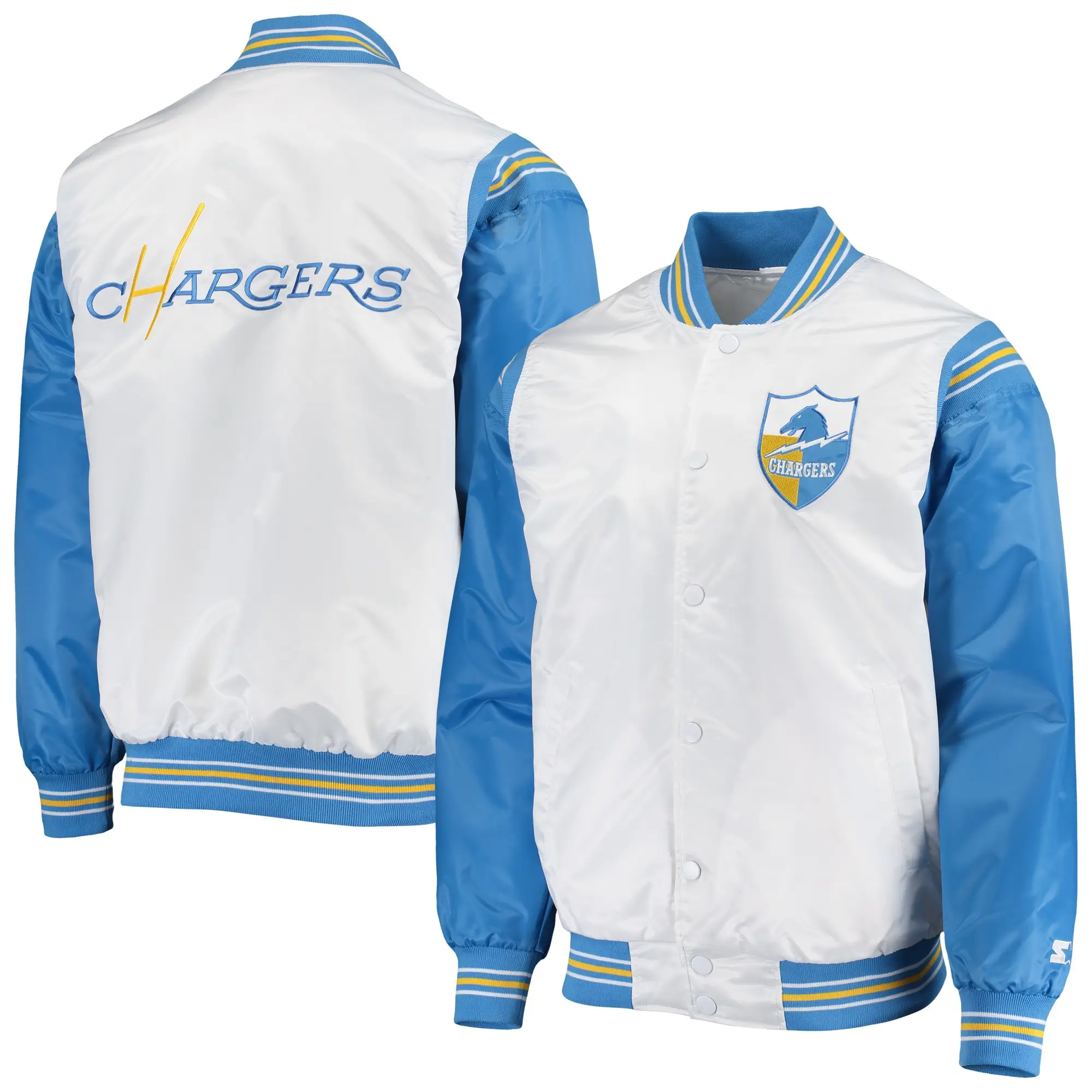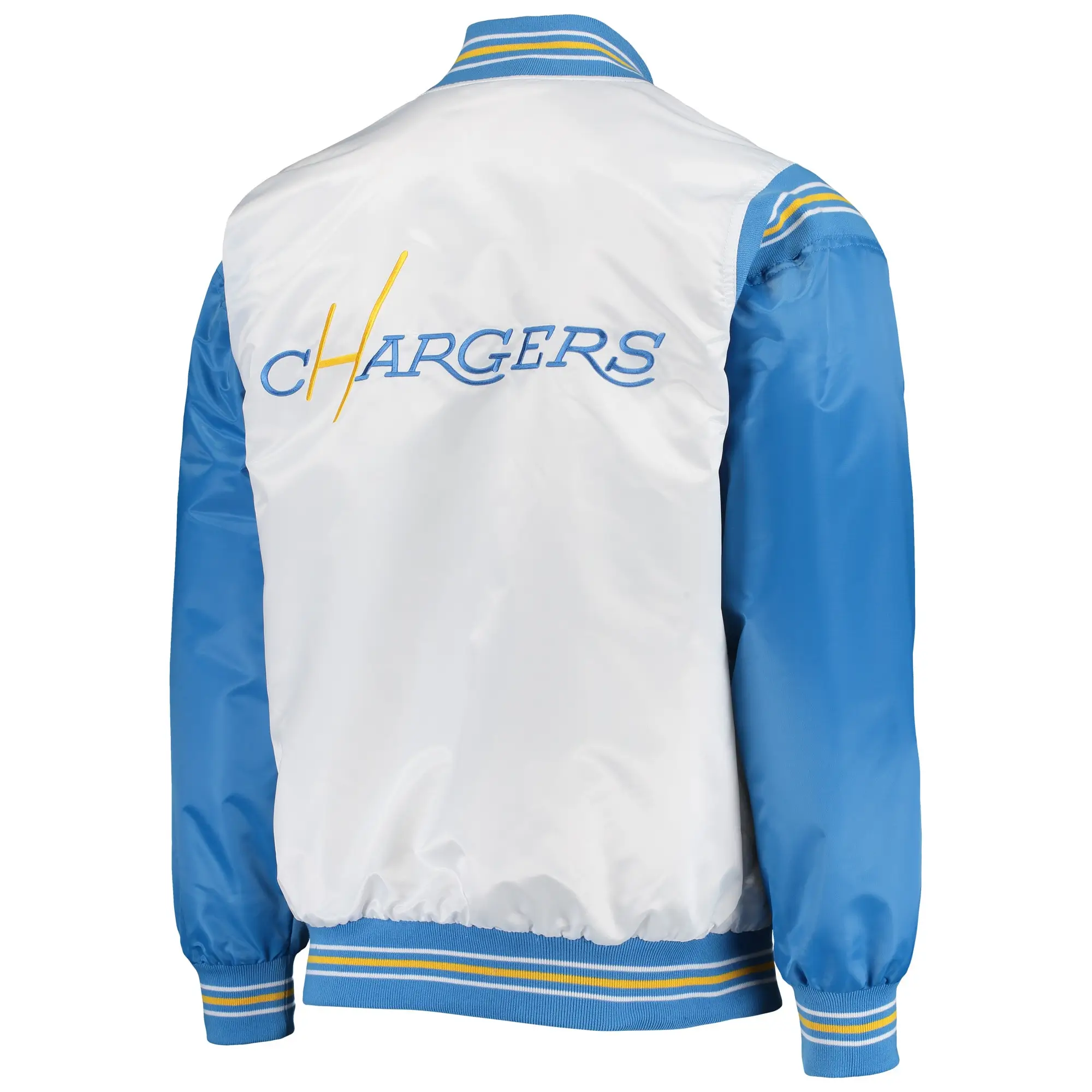 NFL Los Angeles Chargers Renegade Throwback Satin White and Powder Blue Varsity Jacket