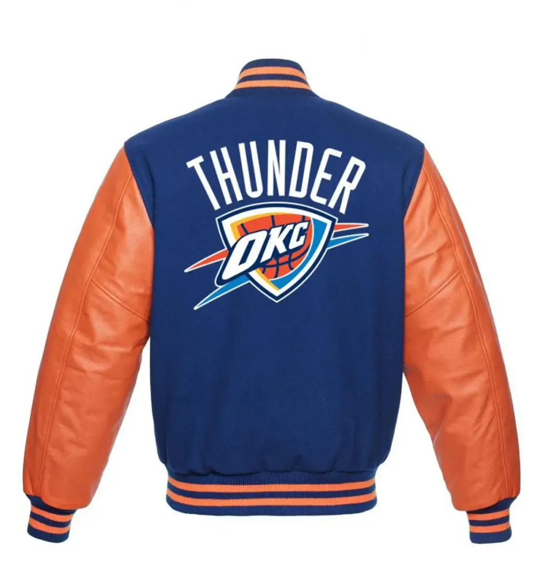 Oklahoma City Thunder Letterman Orange/Blue Wool & Leather Varsity Jacket