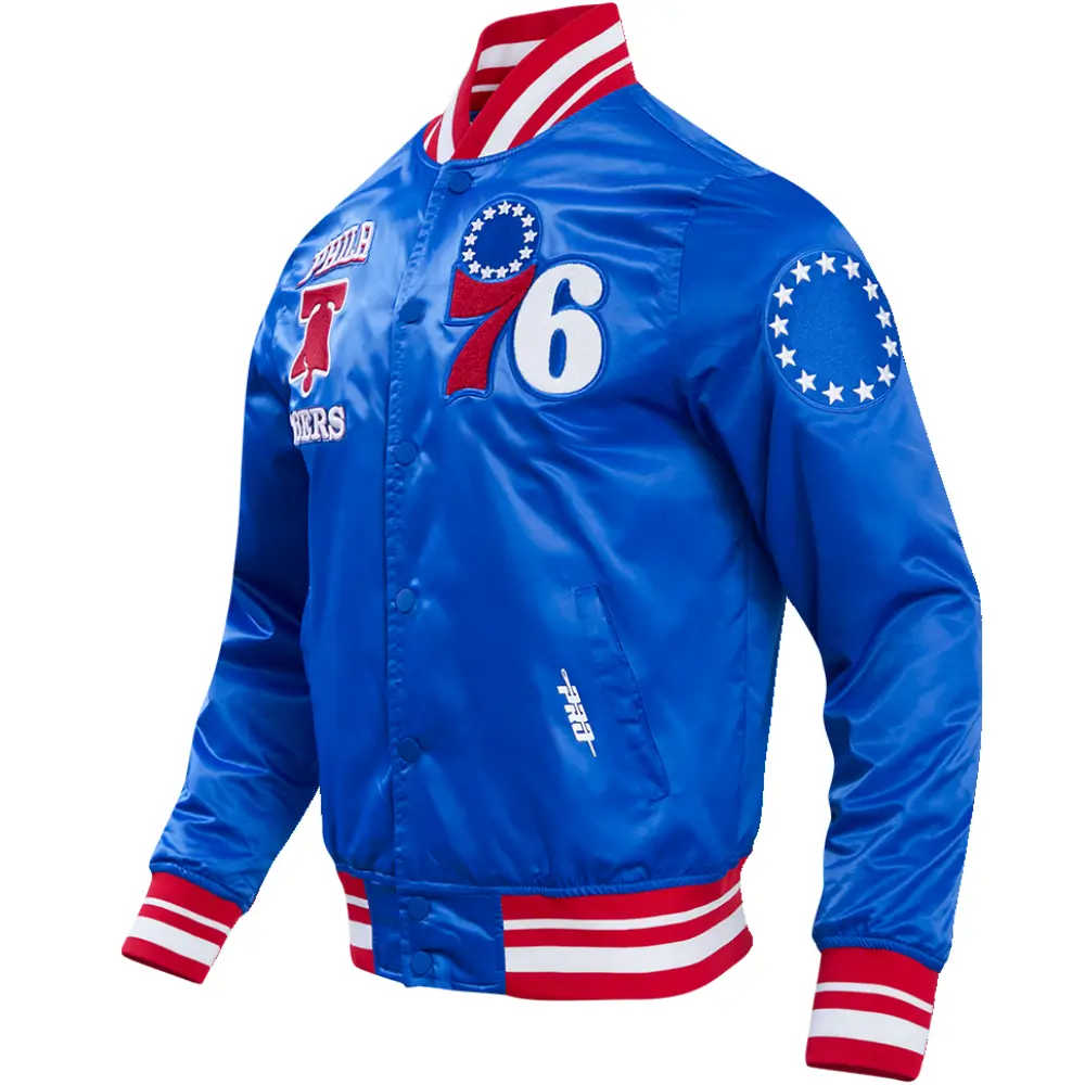 Philadelphia 76ers Classic Rib Satin Varsity Jacket