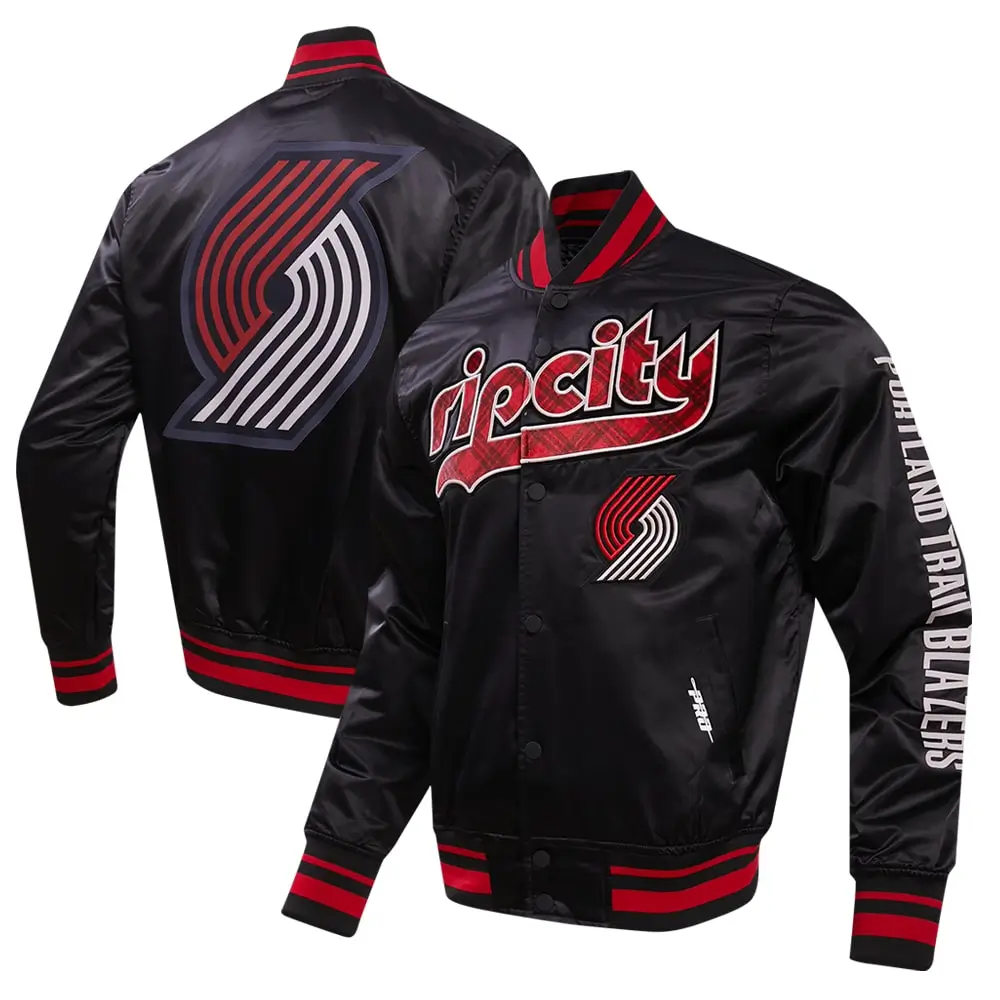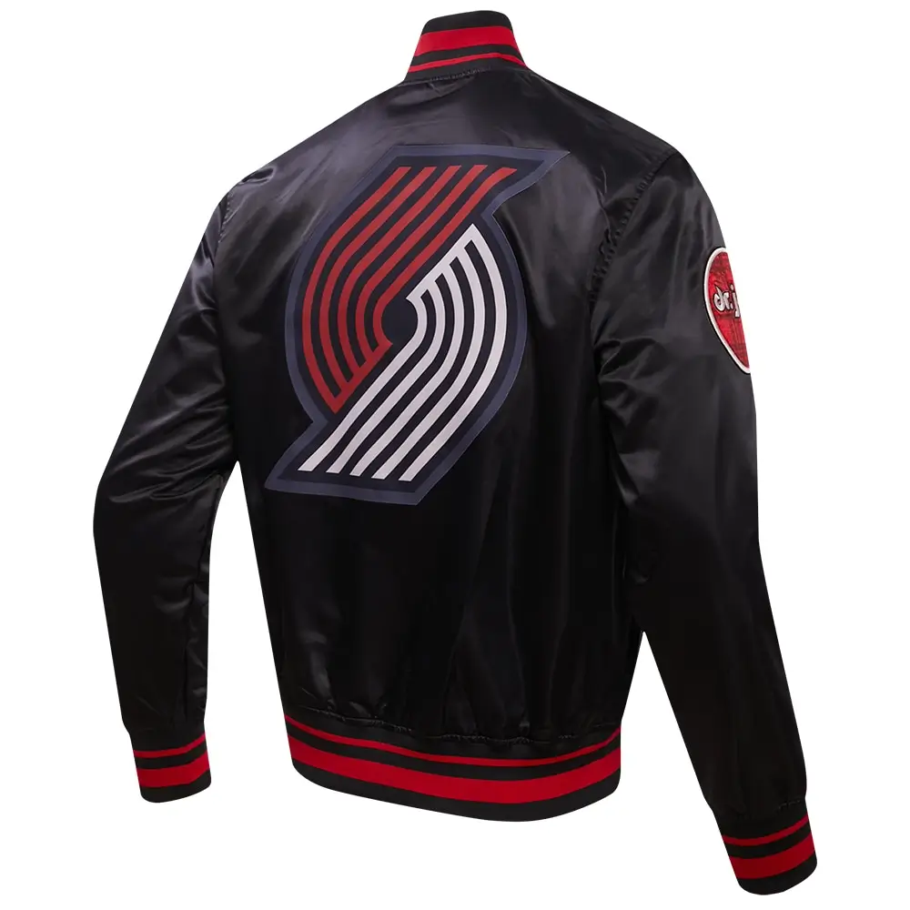 Portland Trail Blazers Satin Black Varsity Jacket