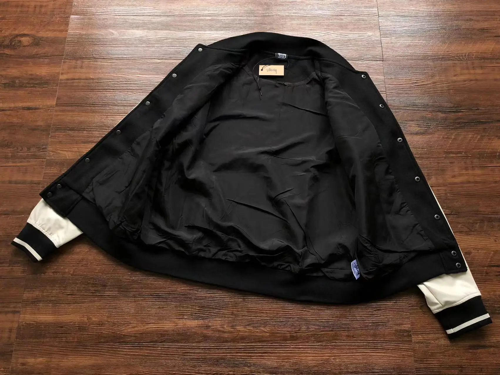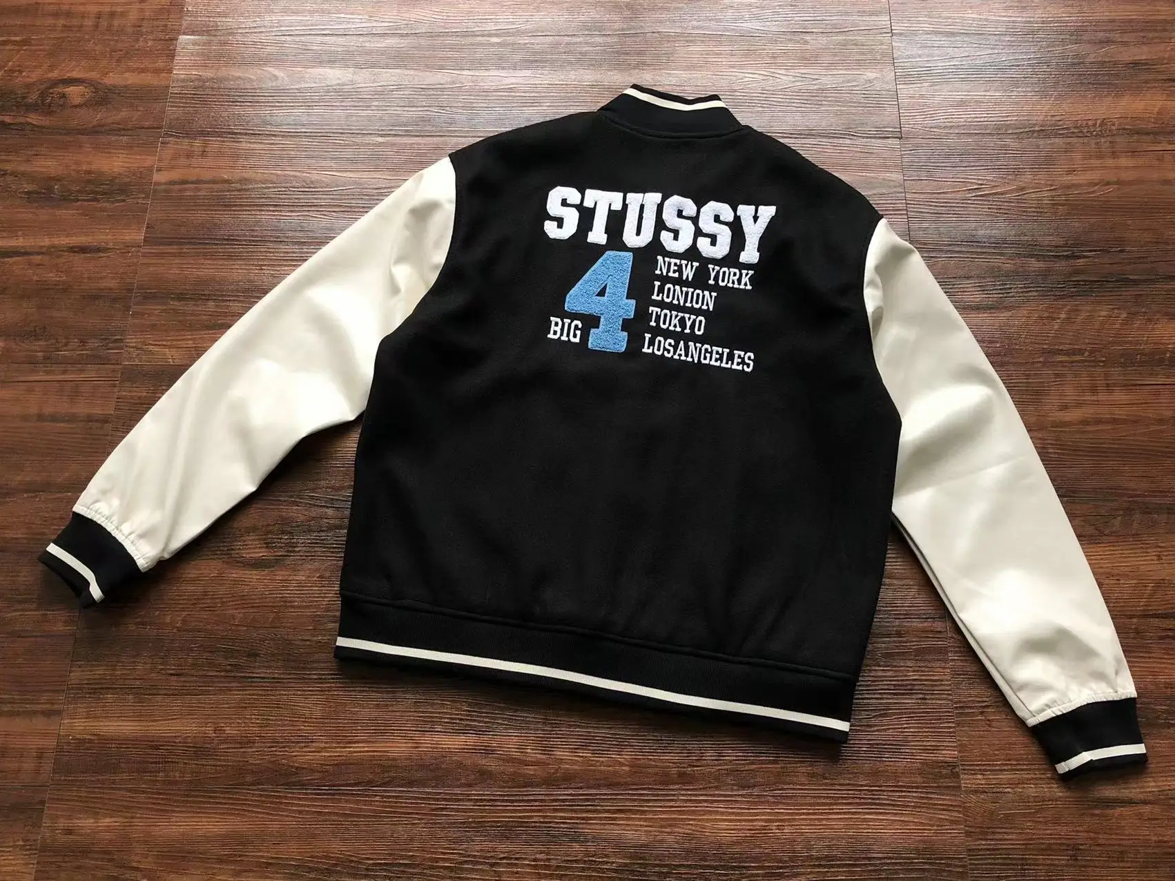 Vintage Stussy Big 4 Wool Black Leather Jacket
